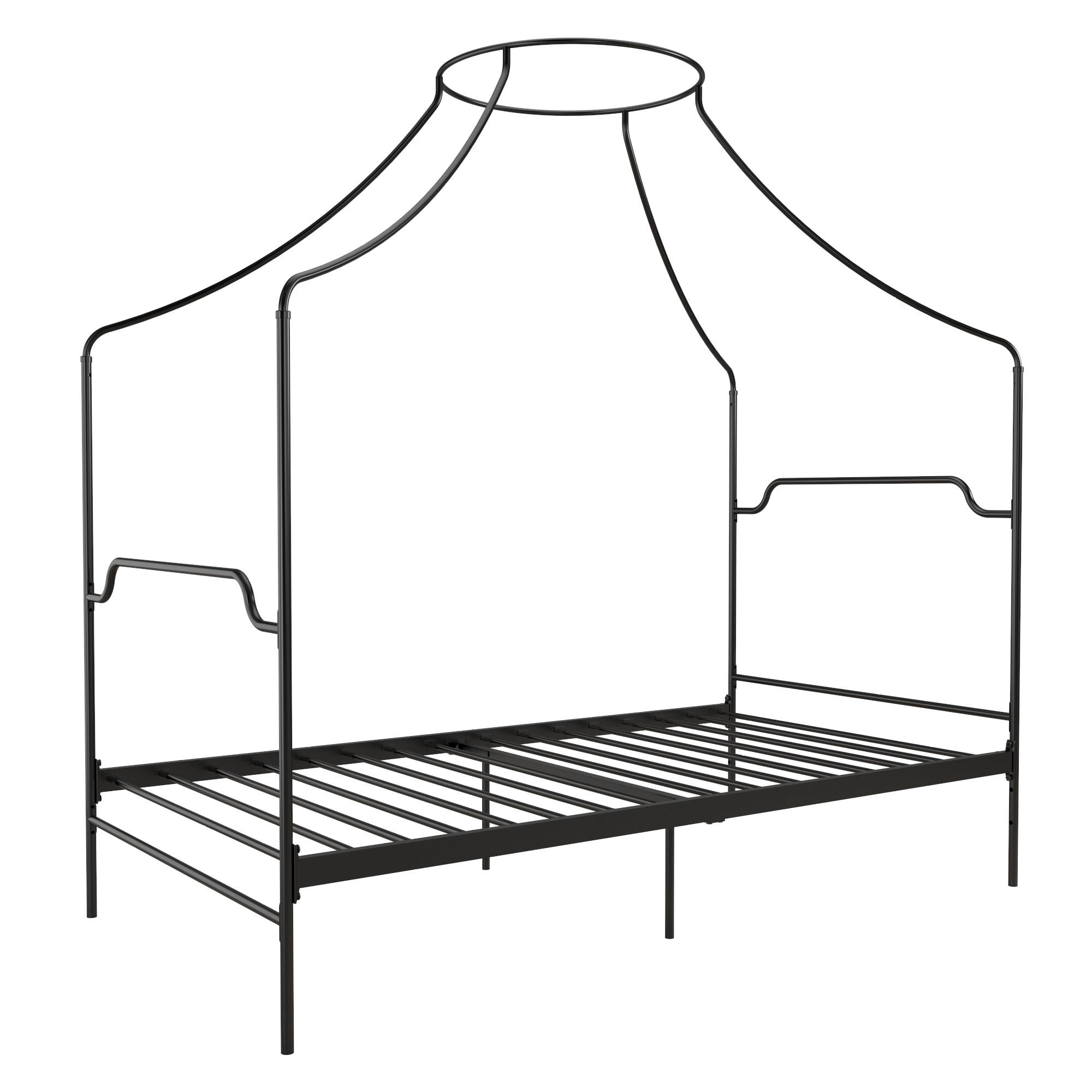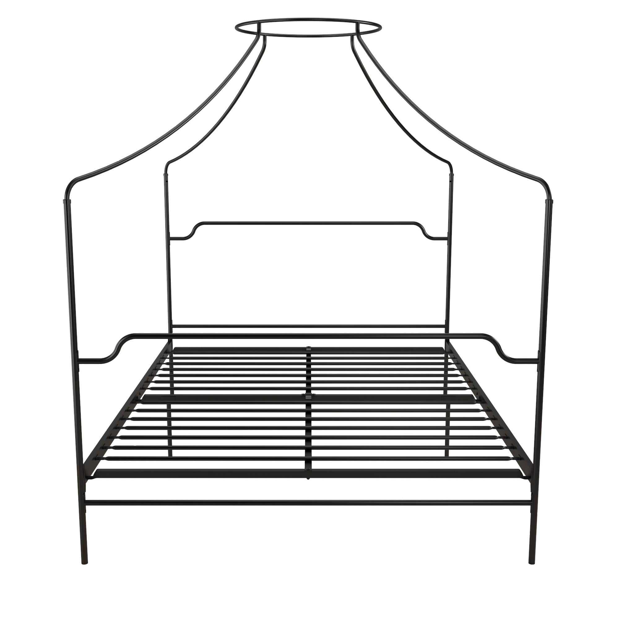 Novogratz camilla metal canopy bed, queen size frame, black. The delicately designed metal frame has a vintage style that will add instant sophistication to your bedroom. The four canopy posts meet in the middle to create a piece that will make a beautiful statement and complement the rest of your room décor. No additional box spring or foundation required. The four canopy posts meet in the middle to create a piece that will.